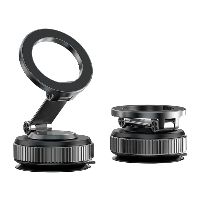 A compact, foldable suction cup mount made of durable metal, offering 360-degree rotation for flexible viewing and positioning. Ideal for secure, adjustable mounting on smooth surfaces.